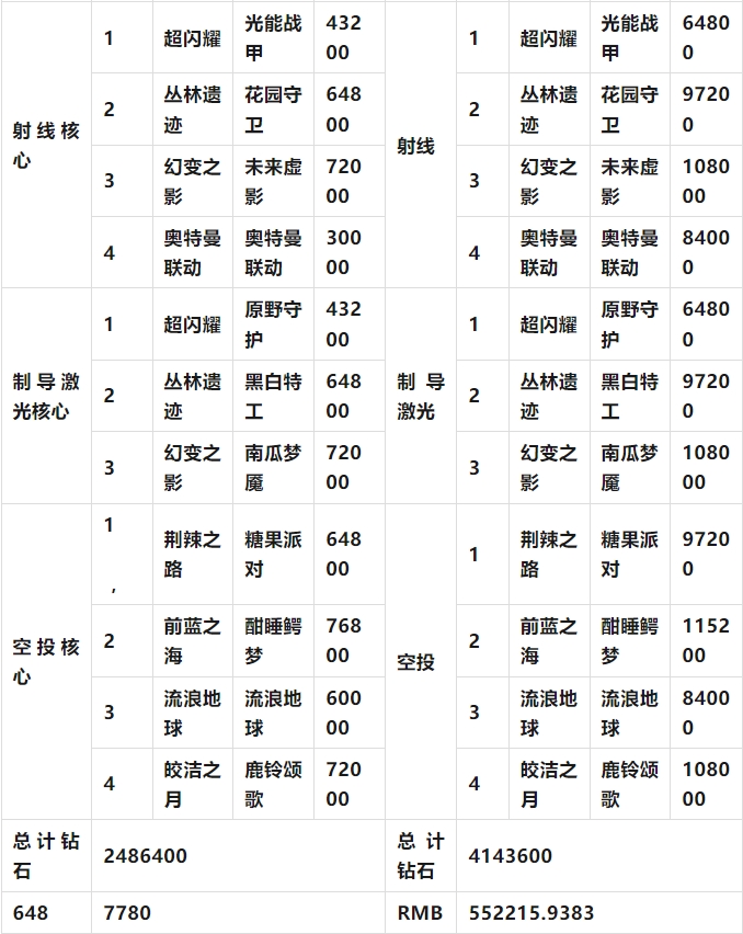 而且時(shí)裝核心中也沒有計(jì)算炫彩套裝,其次每次活動(dòng)的保底金額都不一樣,有的貴有的低,而且還有提前出貨的可能,所以都是取往期活動(dòng)中的平均值進(jìn)行計(jì)算。