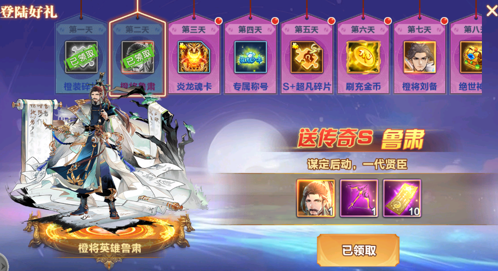 新服登錄活動(dòng),登錄2天送傳奇s英雄魯肅,登錄7天送強(qiáng)力劉皇叔,還有更多的海量福利等你來(lái)領(lǐng)??!