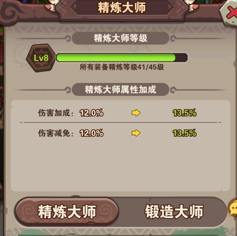 ⑶精煉:需要精煉礦來提升,精煉礦可在歷練(過關(guān)戰(zhàn)將)獲得,也可在52級的天命商店購買,氪老可以在福利禮包購買;精煉大師是每一個裝備的精煉等級,達到要求的等級能提升屬性加成