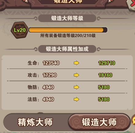 ⑷鍛造:需要鐵礦來強化裝備,也可跟精煉礦一樣在歷練(過關(guān)戰(zhàn)將)獲得,也可在52級的天命商店購買,氪老可以在福利禮包購買;鍛造大師是所有強化裝備的總等級,達到也能提升屬性。