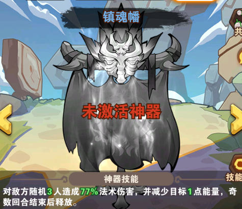 鎮(zhèn)魂幡:對敵方隨機3人造成77%法術(shù)傷害,并減少目標1點能量奇數(shù)回合結(jié)束后釋放。