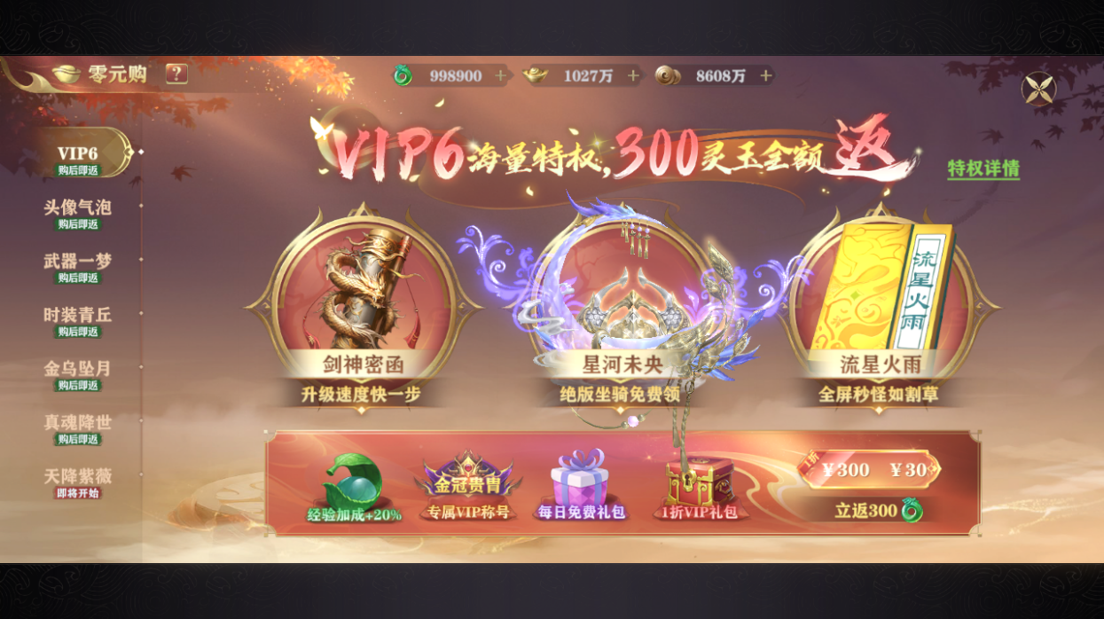 4.0元購(gòu)30的特權(quán)可以直升v6性價(jià)比很高;v6原價(jià)需要1500元