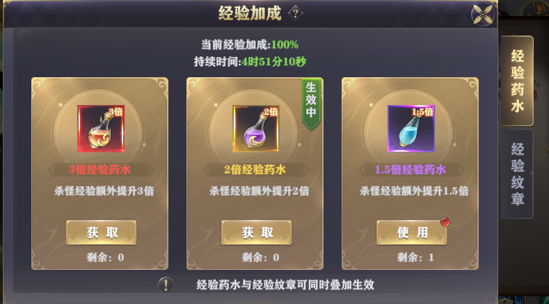 3.進(jìn)入經(jīng)驗(yàn)副本時(shí)一定要記得喝多倍經(jīng)驗(yàn)藥水,這個(gè)很關(guān)鍵
