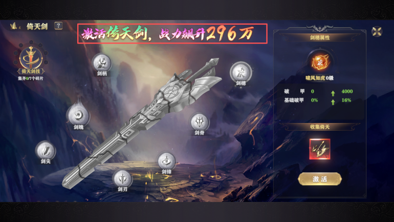 有條件的可以搞空谷劍意特權(quán);可增加材料掉落收益+額外屬性