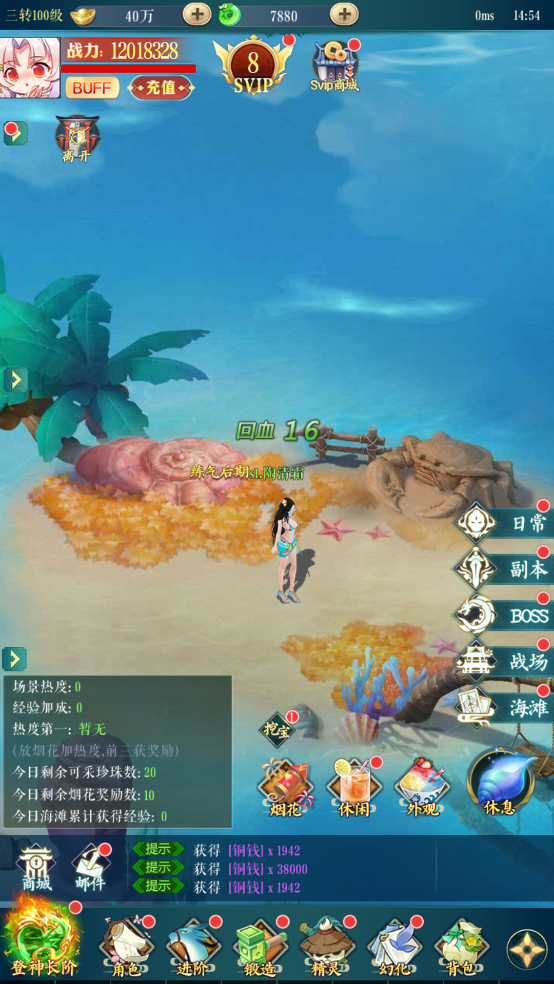 5.海灘活動:參與海灘活動也能獲得大量經(jīng)驗哦,但有時間限制,每天12:00-12:30開啟一次,每天18:00-18:30開啟一次,每天可參與兩次,小伙伴們別忘記哦~