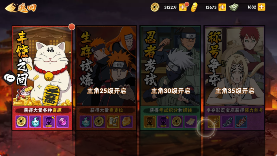 本游戲有非常多有意思的副本玩法,豐饒之間完成不同玩法副本,可獲得大量忍者培養(yǎng)資源,快速升階,戰(zhàn)力翻倍。在忍者之路中首通層數(shù)可獲得珍稀裝備、武將碎片獎勵,掃蕩可獲得大量銅錢和突破石。在妙木山進(jìn)行忍者單挑過關(guān),解鎖隨機奇遇,更有多種玩法,獲取豐富資源。