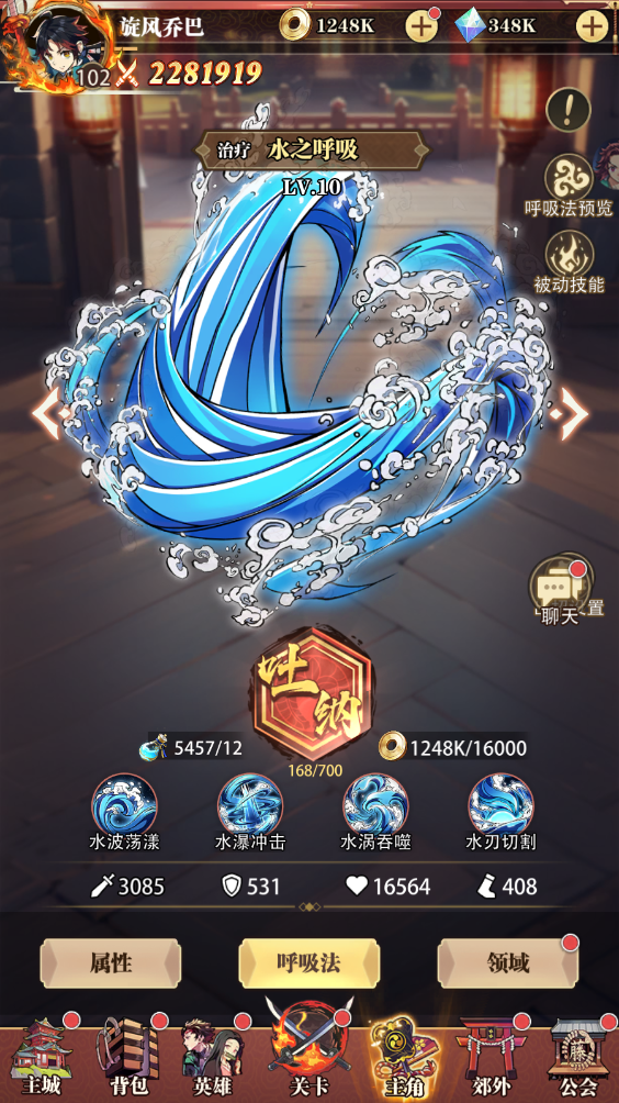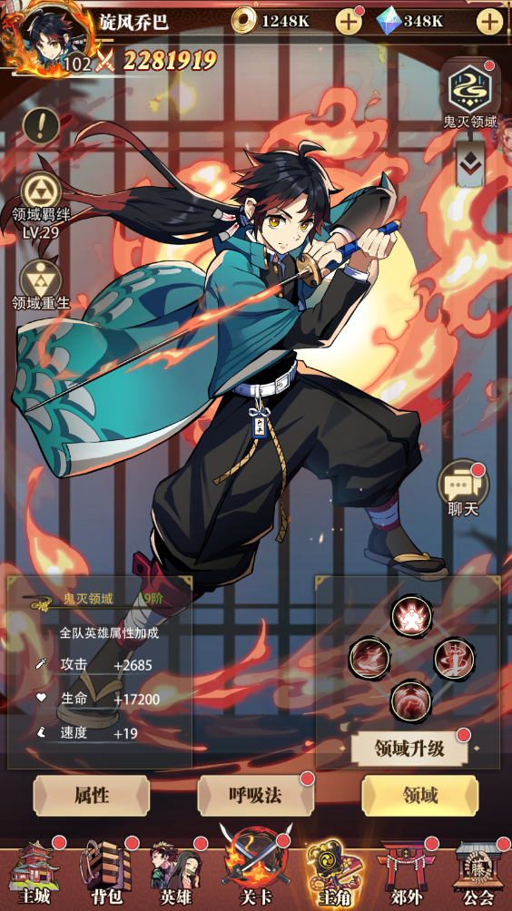 主角系統(tǒng)為玩家主角養(yǎng)成功能,分為:呼吸法、領(lǐng)域兩大養(yǎng)成功能。