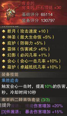 暴怒痛擊:提高30%技能傷害,增加10%雙倍一擊率,說是痛擊實至名歸。