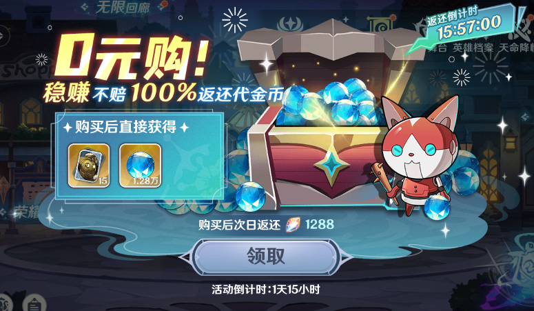 3.購買0元購禮包,次日全額返還代金幣