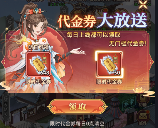 三、無門檻代金券大放送,每日上線都可以領取,記得不要錯過,也要看好時間使用哦!