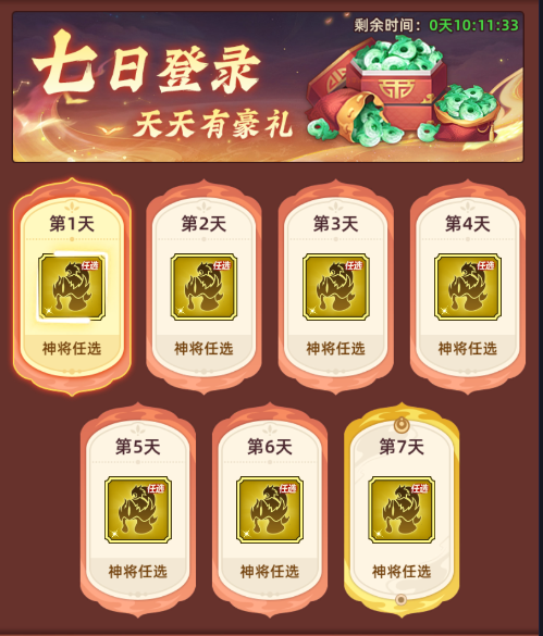 六、七日登入,每天神將任選+每天百連抽