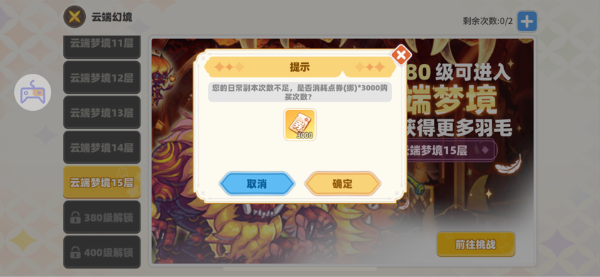 云端幻境增加1次需要花費(fèi)3000點(diǎn)券。