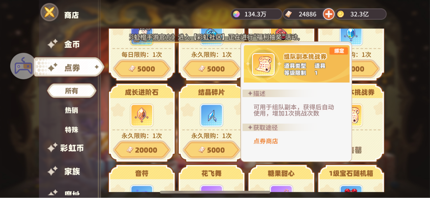 另外,每日禮包,周卡,跨服競技的榮譽(yù)商店里,以及不同時(shí)期的活動(dòng)都可以買到組隊(duì)副本挑戰(zhàn)券,花費(fèi)不等。