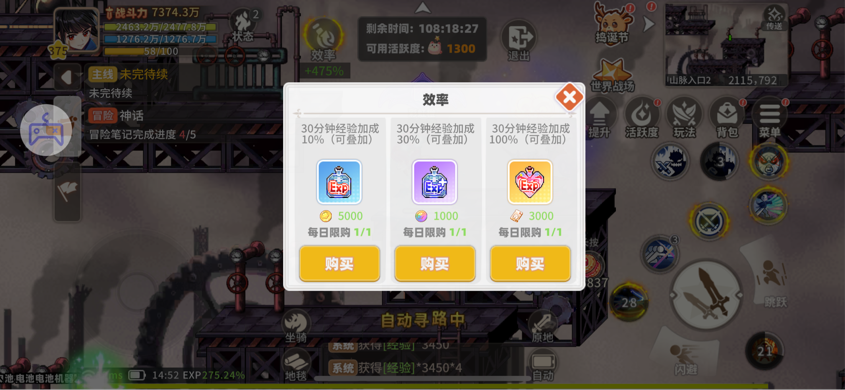 我們的每周禮包里面會(huì)有一瓶24小時(shí)的三倍經(jīng)驗(yàn)藥水,我們不開戰(zhàn)令儲(chǔ)存活躍度的目的就是要讓這瓶24小時(shí)的三倍經(jīng)驗(yàn)藥水利用最大化。 經(jīng)驗(yàn)藥水的獲取途徑有每日禮包(6元檔,1瓶1小時(shí)的雙倍經(jīng)驗(yàn)),每周禮包(30元檔,1瓶24小時(shí)的三倍經(jīng)驗(yàn)),周末游玩(6元檔,1瓶12小時(shí)的三倍經(jīng)驗(yàn),周末兩天一共可以買2瓶),以及平時(shí)可能出現(xiàn)的各種活動(dòng)(基本都是6元檔,1瓶1小時(shí)的三倍經(jīng)驗(yàn)或五倍經(jīng)驗(yàn)),還有每天經(jīng)驗(yàn)地圖里的效率點(diǎn)開,有3種30分鐘的藥水,可以量力購買。