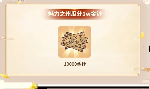 2)除了全民應(yīng)援獎勵,還有重磅州獎勵,快快為自己州的女神應(yīng)援,有機(jī)會全州瓜分10000金鈔!