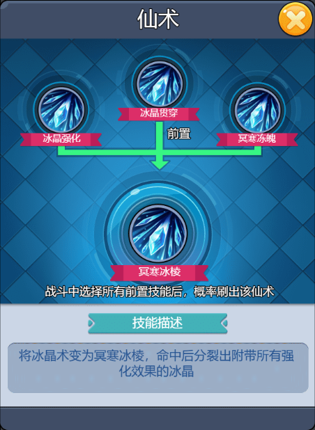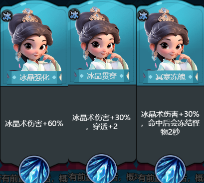 將冰晶術(shù)變?yōu)橼ず?,命中后分裂出附帶所有強化效果的冰晶?? ?