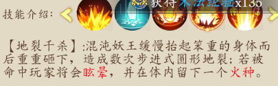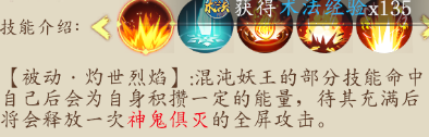注:這個技能可以說不算是BOSS技能,說是福利更貼切一點,場地中會刷新4-5個小魔兵,玩家擊殺后會有個光團,可以吃掉的,吃完后會有個額外的技能【如上圖顯示】,技能圖片解釋的比較模糊,直白一點,在BOSS飛天落地后,此技能才可對BOSS釋放,削弱BOSS熱量值,三層意思,1.削弱BOSS技能一所獲得能量值。2.降低玩家所受技能傷害。3.降低灼傷狀態(tài)的增幅。