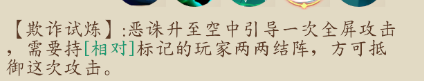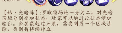 注:BOSS會隨機選擇一名玩家進行攻擊,其余玩家要看清被選玩家陣營歸屬,同陣營所有玩家需要共同站在光圈中,減免被選玩家所受傷害,不然被選玩家會被秒殺。