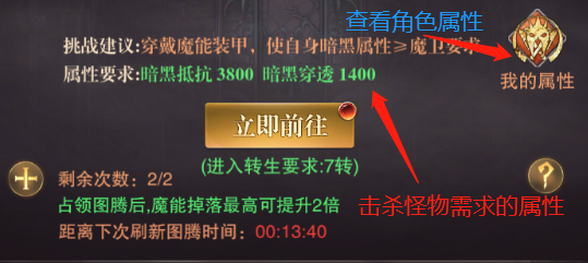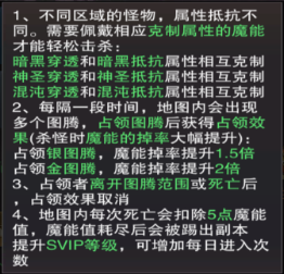 從圖中我們可以得知不同魔能裝備的克制屬性,另外該副本中含有銀圖騰與金圖騰,占有后魔能掉率會得到提升,建議條件允許的情況下,盡量占領(lǐng)金圖騰來擊殺怪物,獲取最大的副本收益。