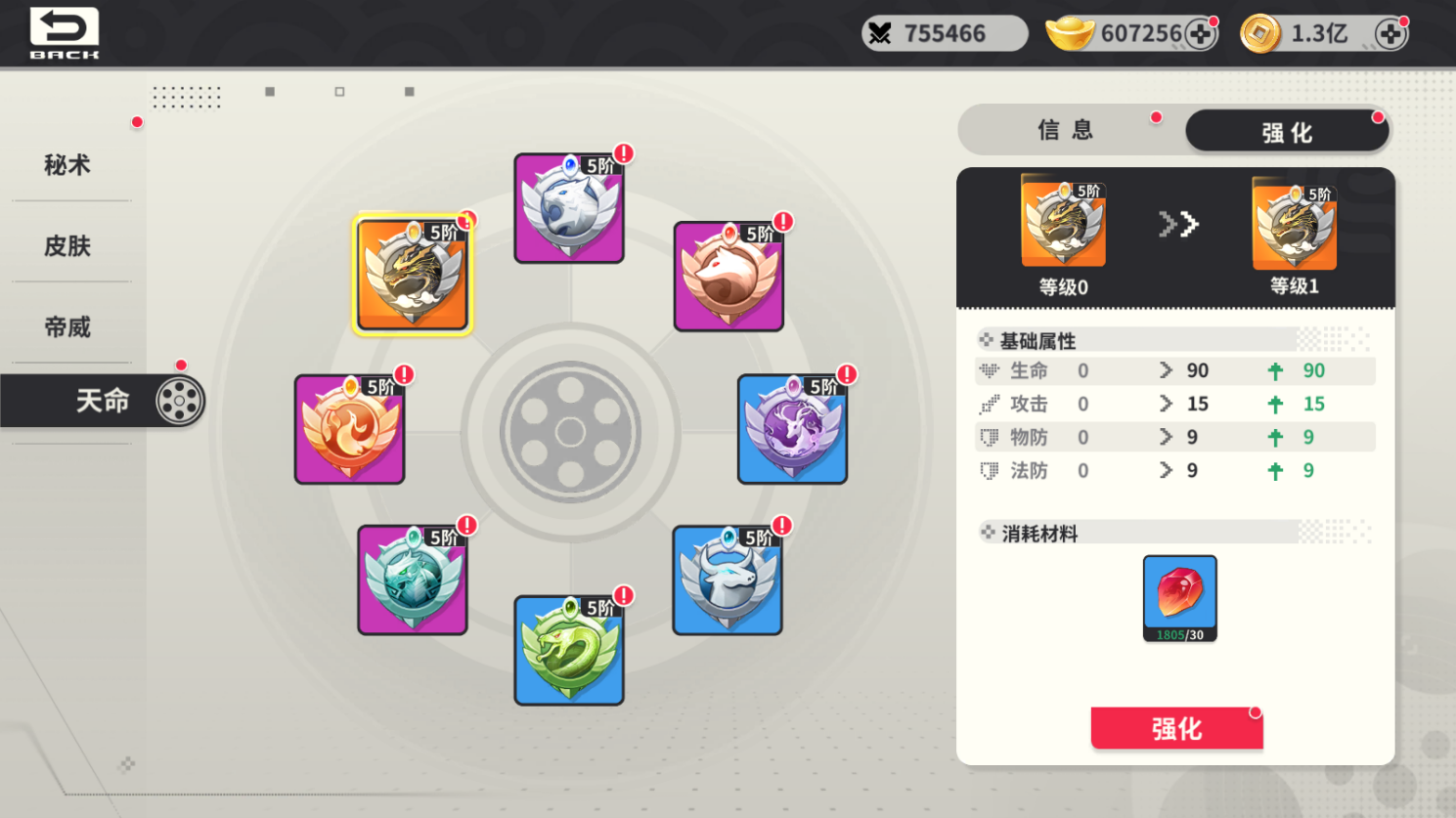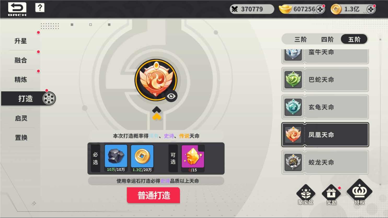 玩家可以通過打造材料獲得對應(yīng)天命,同時可以裝備天命來提升數(shù)值。天命采用換代形式,不同等級裝備的天命階數(shù)是不一樣的。同時天命可以進(jìn)行強(qiáng)化和突破,提升天命屬性。