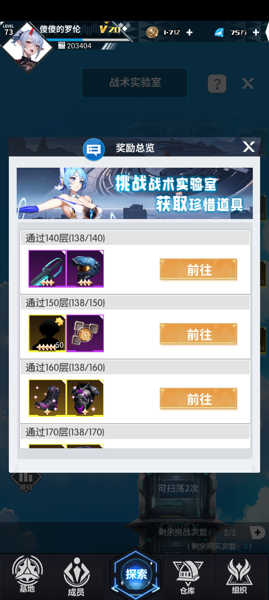 系統(tǒng)介紹:首通每層實驗室均可獲得元石、金幣及英雄精英,通過達標層數(shù)可獲得額外達標獎勵。