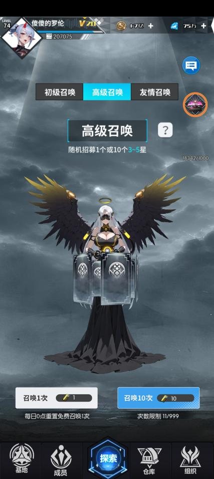 精英召喚有較大概率獲取普通三系(天、地、人)和普通神魔五星英雄,同時有較小概率可獲取稀有三系(天、地、人)和稀有神魔五星英雄精英,每次召喚可額外獲得稀有精華、貴賓積分、精英積分,分別用于精英商店兌換、英雄轉換及積分召喚(必出五星傳說英雄)。