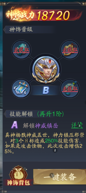 其次就是神飾,能夠提升天神的品級(jí),最初天神都為C級(jí)需要自行升品