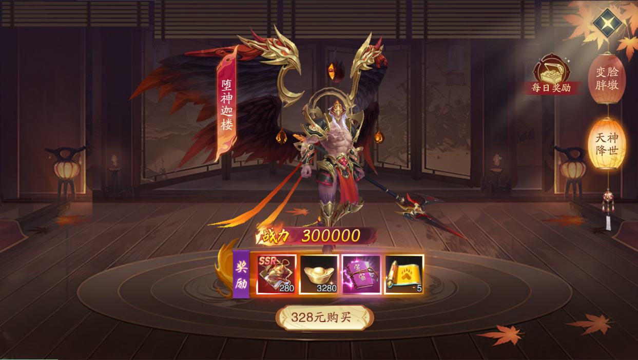 其次就是天神降世以及變臉胖墩兩個(gè)禮包,前期獲取一個(gè)SSR天神以及SSR寵物外觀,這些屬性都是直接加在角色上,而天神能夠讓你前期神擋殺神,平推大部分關(guān)卡,越戰(zhàn)力挑戰(zhàn)也是簡(jiǎn)簡(jiǎn)單單的