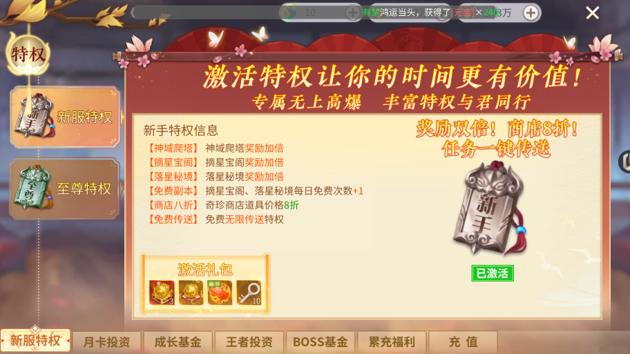 2、超值月卡永久卡微氪黨必備,性價比極高,新服特權(quán),提升戰(zhàn)力快人一步!