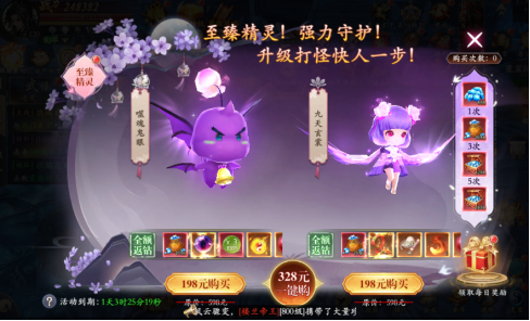 購(gòu)買(mǎi)至臻精靈直購(gòu),購(gòu)買(mǎi)完次數(shù)可獲得50個(gè)狂歡經(jīng)驗(yàn)丹,使用后可將等級(jí)從120級(jí)提升至161級(jí)